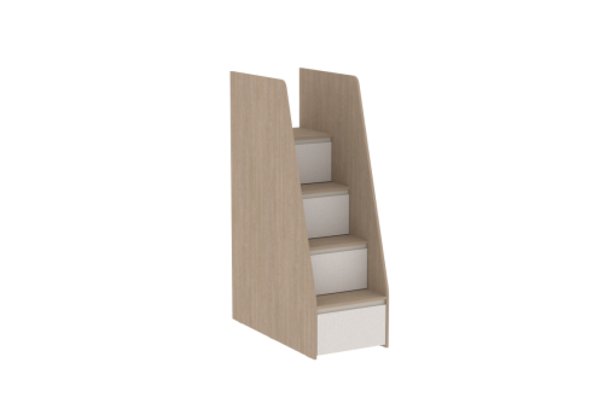 Двухъярусная кровать – стильное и функциональное решение для меблировки современной детской комнаты. Для лёгкого доступа на второй ярус кровати-чердака, в коллекции имеется приставная лестница с ящиками, встроенными в ступени. Ящики подходят для хранения одежды, обуви и игрушек.