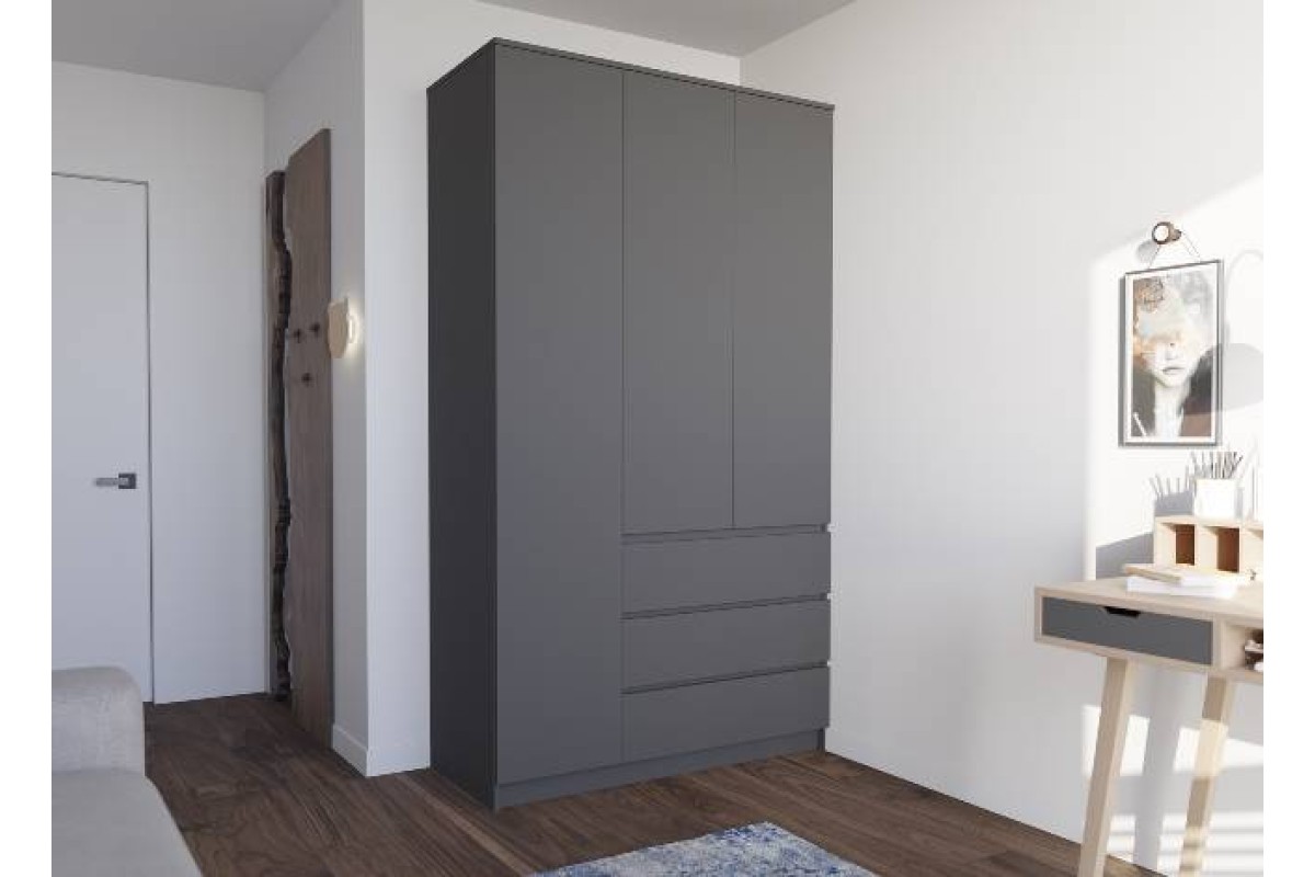 Как рационально сэкономить пространство в помещении, не забыв при этом о функциональности каждой зоны. Предлагаем вашему вниманию модульную систему «Мори», в которой дизайнеры удачно реализовали сложные задачи рациональной расстановки мебели внутри помещения. Фасадом для мебели служит высококачественный ЛДСП цвета графит. Спокойный графитовый цвет фасада мебели станет основным психологическим подходом для грамотного зонирования внутри помещения.