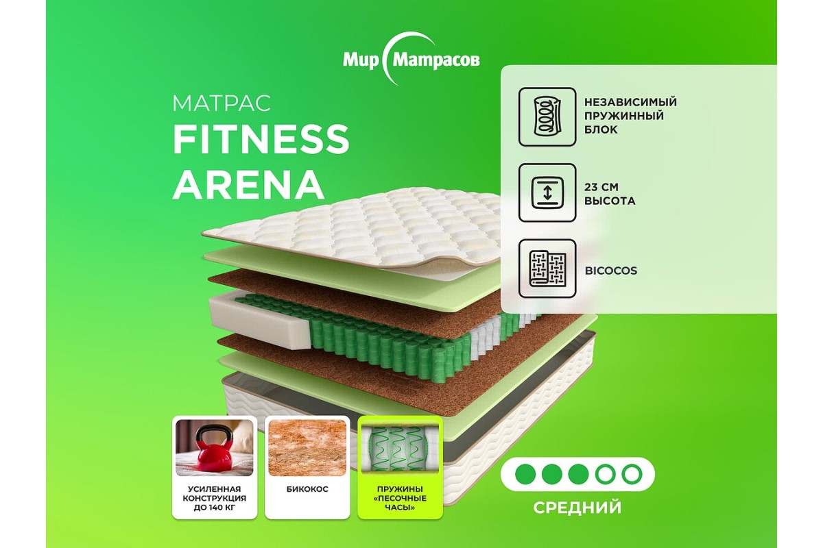 Матрас Арена – самый популярный матрас в коллекции Фитнес. “Умный” пружинный блок, в сочетании с бикокосом и пеной Orto Foam с экстрактом зеленого чая, формирует упругую основу средней жесткости.