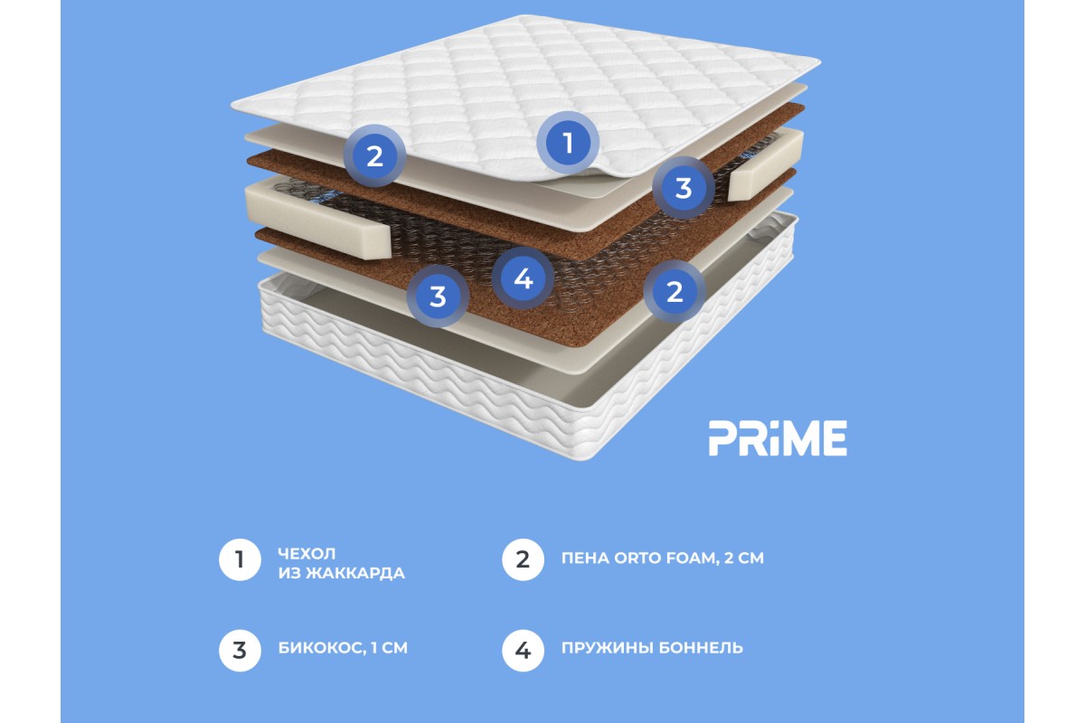 Бикокос – 1 см. Современный комбинированный наполнитель высокой прочности, выдерживает интенсивные нагрузки. Бикокос обеспечивает отличный тепло- и воздухообмен, не имеет никаких посторонних запахов, увеличивает жесткость матраса и его эксплуатационные характеристики.