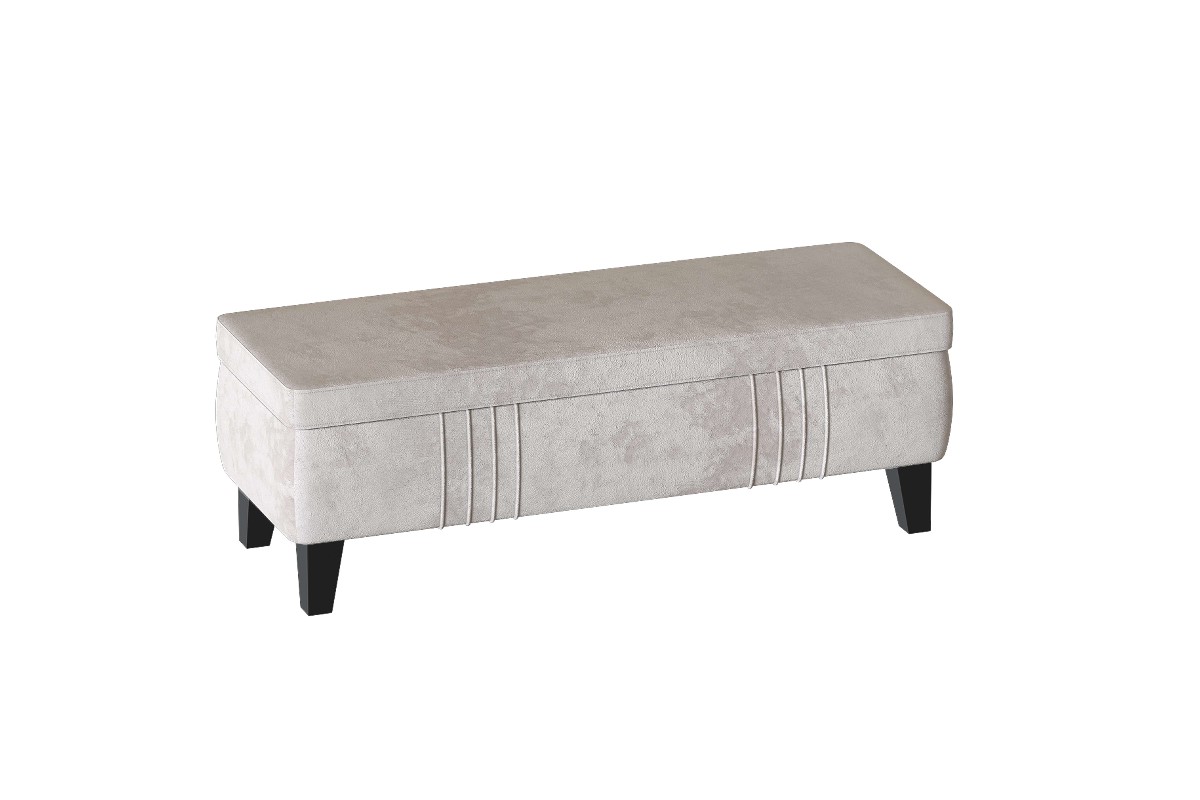 Декоративная отстрочка по высококачественному велюру добавляет приятный объем и украшает изделие. Опоры выполнены из массива берёзы, покрыты прозрачным лаком и имеют защитные войлочные наклейки. Банкетка хороша не только в спальне, но и в гостиной, на кухне и в детской комнате. Максимальная нагрузка 110 кг.