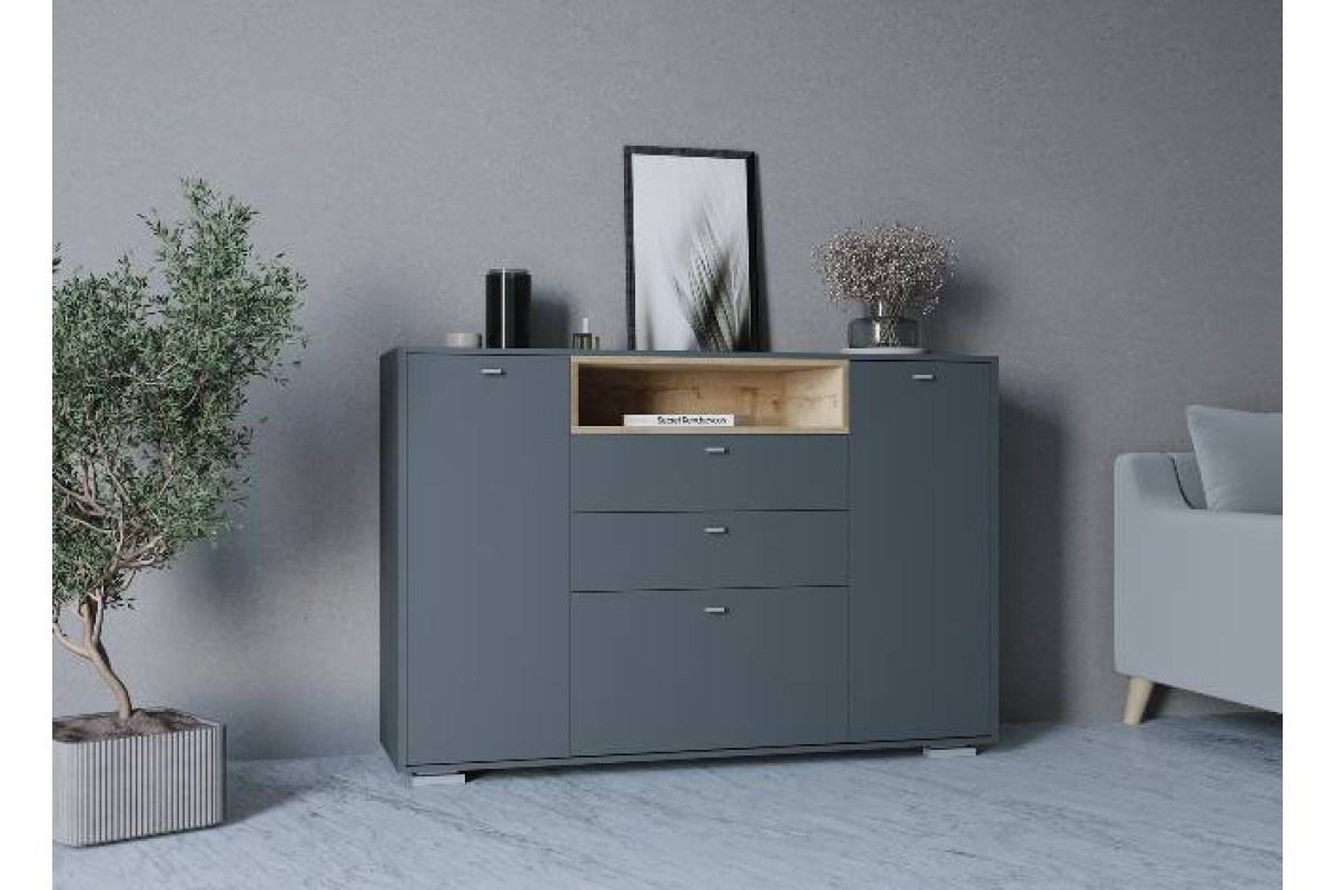 Стильный и привлекательный комод «Ланс» станет отличным решением для помещений и квартир. Комод «Ланс» поистине уникален, он сочетает в себе спокойствие и нежность, комфорт и удобство, удовольствие и приятные эмоции. Интерьер благодаря комоду станет гармоничным и интересным. Насыщенные оттенки графита и дуба бунратти, стильные детали и гладкие фасады не могут не радовать новых владельцев.